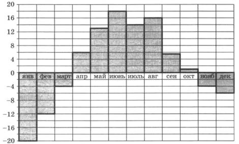 Задание 2. На диаграмме показана среднемесячная температура воздуха в Екатеринбурге (Свердловске) за каждый месяц 1973 года. По горизонтали указываются месяцы, по вертикали — температура в градусах Цельсия. Определите по диаграмме, сколько было месяцев, когда среднемесячная температура превышала 10 градусов Цельсия в 1973 году.