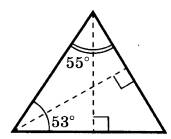 Задание 6. Два угла треугольника равны 53° и 55°. Найдите угол, который образуют высоты треугольника, выходящие из вершин этих углов. Ответ дайте в градусах.