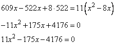 на 11 часов больше, чем второй для изготовления 609 деталей. Получаем
