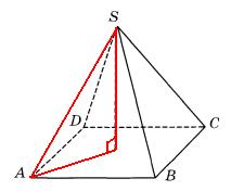 Чтобы найти площадь основания, найдем диагональ квадрата, лежащего в основании пирамиды. Нам дана длина бокового ребра и высота. Рассмотрим прямоугольный треугольник, показанный на рисунке ниже.