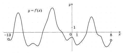 Задание 7. На рисунке изображён график y = f'(x) — производной функции f(x), определённой на интервале (-13;8). Найдите количество точек максимума функции f(x), принадлежащих отрезку [-8; 6].