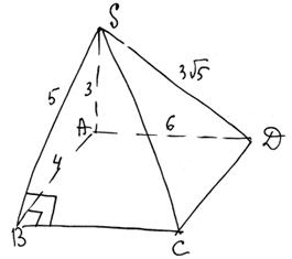 Задание 14. В основании четырёхугольной пирамиды SABCD лежит прямоугольник ABCD со сторонами АВ = 4 и ВС = 6. Длины боковых рёбер пирамиды SA = 3, SB = 5, SD = 3√5.