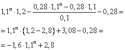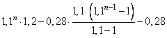 Олег взял кредит в 1,2 млн. рублей под 10% годовых и каждый год готов выплачивать по 0,28 млн. рублей (взята максимальная сумма, чтобы определить минимальное число лет). В конце года, кредит увеличивается на 10% и гасится на 0,28 млн. рублей, имеем:
