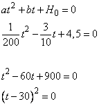 = 4,5 м — начальный уровень воды, а =1/200 м/мин2 и b = -3/10 м/мин — постоянные, t