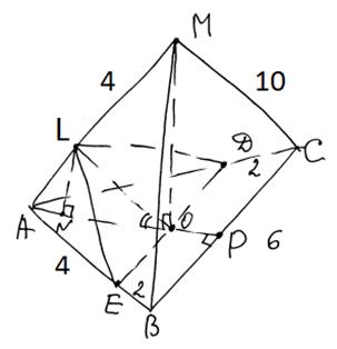 Задание 14. В правильной треугольной пирамиде МАВС с основанием ABC стороны основания равны 6, а боковые рёбра равны 10. На ребре АС находится точка D, на ребре АВ находится точка Е, а на ребре AM — точка L. Известно, что AD = АЕ = LM = 4.