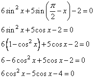 Переходя к косинусу, получаем