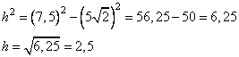 Задание 8. В правильной четырёхугольной пирамиде боковое ребро равно 7,5, а сторона основания равна 10. Найдите высоту пирамиды.