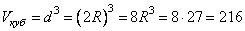Объем куба, описанного вокруг шара, равен диаметру шара в кубе, т.е.