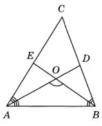 6 | В треугольнике ABC угол С равен 52°, биссектрисы AD и BE пересекаются в точке О. Найдите угол АОВ. Ответ дайте в градусах.