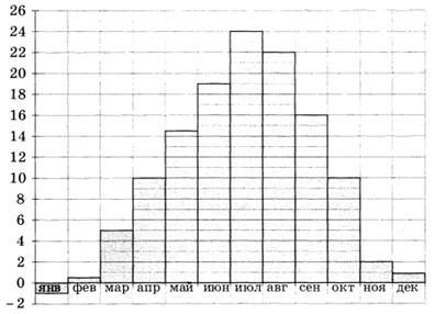 2 | На диаграмме показана среднемесячная температура воздуха в Симферополе за каждый месяц 1988 года. По горизонтали указываются месяцы, по вертикали — температура в градусах Цельсия. Определите по диаграмме, в каком месяце средняя температура впервые превысила 12 °С. В ответе напишите номер месяца.