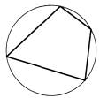 6 | Два угла вписанного в окружность четырёхугольника равны 56° и 77°. Найдите меньший из оставшихся углов. Ответ дайте в градусах.