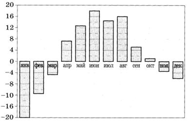 2 | На диаграмме показана среднемесячная температура воздуха в Екатеринбурге (Свердловске) за каждый месяц 1973 года. По горизонтали указываются месяцы, по вертикали — температура в градусах Цельсия. Определите по приведённой диаграмме, сколько месяцев среднемесячная температура не превышала 6 градусов Цельсия.