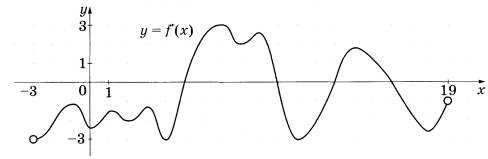 7 | На рисунке изображён график у=f'(x) — производной функции f(x), определённой на интервале (-3; 19). Найдите количество точек максимума функции f(х), принадлежащих отрезку [-2; 15].