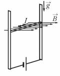 Задание 26. В однородном магнитном поле по вертикальным направляющим без трения скользит прямой горизонтальный проводник массой 0,2 кг, по которому течёт ток 2 А. Вектор магнитной индукции направлен горизонтально перпендикулярно проводнику (см. рисунок), В = 2 Тл. Чему равна длина проводника, если известно, что ускорение проводника направлено вниз и равно 2 м/с2?