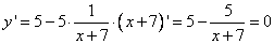 Задание 12. Найдите точку минимума функции y = 5x - 5ln(x + 7) + 7.