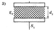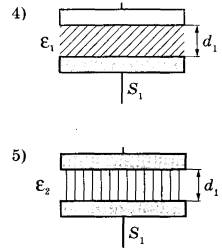 Задание 23. Ученику необходимо экспериментально выявить зависимость электроёмкости плоского конденсатора от расстояния между его пластинами. На всех представленных ниже рисунках S — площадь пластин конденсатора, d — расстояние между пластинами конденсатора, ε — диэлектрическая проницаемость среды, заполняющей пространство между пластинами. Какие два конденсатора следует использовать для проведения такого исследования?
