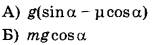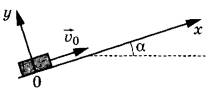 7 | После толчка диск массой m начал скользить с начальной скоростью v0 вверх по плоскости, установленной под углом α к горизонту (см. рисунок). Переместившись вдоль оси Ох на расстояние s, диск соскользнул в исходное положение. Коэффициент трения диска о плоскость равен μ. Формулы А и Б позволяют рассчитать значения физических величин, характеризующих движение диска.