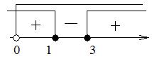 Получаем две точки 1 и 3, разбивающие числовую ось следующим образом: