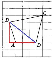 Найдем диагональ BD из прямоугольного треугольника (см. рисунок ниже), в котором известны катеты (см. красные линии) с длинами 3 и 4 клетки.