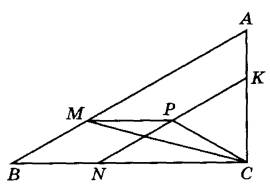 Задание 16. На гипотенузе АВ и катетах ВС и АС прямоугольного треугольника ABC отмечены точки М, N и К соответственно, причём прямая NK параллельна прямой АВ и ВМ = BN = 1/2∙KN, Точка Р — середина отрезка KN.