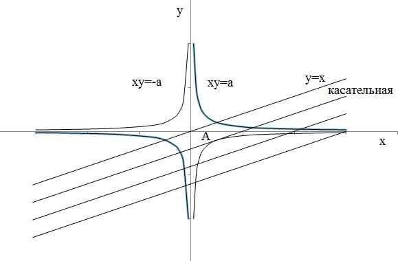 точкой касания прямой и гиперболы. В общем виде уравнение касательной имеет вид