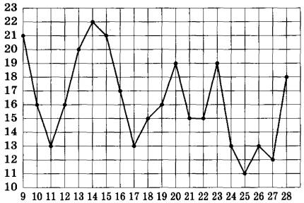 Задание 2. На рисунке жирными точками показана средняя температура воздуха в Калининграде во все дни с 9 по 28 апреля 2018 года. По горизонтали указываются числа месяца, по вертикали — средняя температура в градусах Цельсия. Для наглядности точки на рисунке соединены линией.
