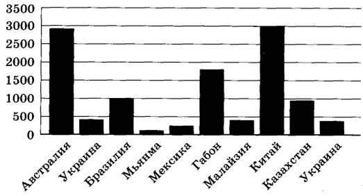 Задание 2. На диаграмме показано распределение добычи марганцевой руды в 10 странах мира (в тоннах) за 2015 год. Среди представленных стран первое место по добыче марганцевой руды занимал Китай, десятое место — Мьянма. Какое место занимал Габон?