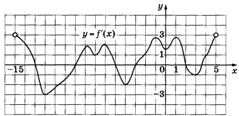 Задание 7. На рисунке изображён график y = f’(x) — производной функции f(x), определённой на интервале (-15; 5). Найдите количество точек максимума функции f(x), принадлежащих отрезку [-11; 4].