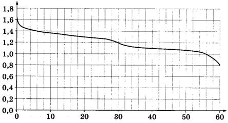 2 | При работе фонарика батарейка постепенно разряжается, и напряжение в электрической цепи фонарика падает. На рисунке показана зависимость напряжения в цепи от времени работы фонарика. На горизонтальной оси отмечается время работы фонарика в часах, на вертикальной оси — напряжение в вольтах. Определите по рисунку, через сколько часов работы фонарика напряжение уменьшится до 1 вольта.