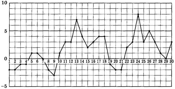 2 | На рисунке жирными точками показана средняя температура воздуха в Мурманске во все дни апреля 2018 года. По горизонтали указываются числа месяца, по вертикали — средняя температура в градусах Цельсия. Для наглядности точки на рисунке соединены линией.