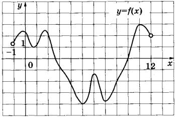 7 | На рисунке изображён график функции у = f(х), определённой на интервале (-1; 12). Найдите количество точек, в которых производная функции f(х) равна 0.