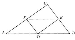 3 | Периметр треугольника ABC равен 8. Найдите периметр треугольника FDE, вершинами которого являются середины сторон треугольника ABC.