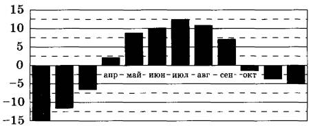 11 | На диаграмме показана среднемесячная температура воздуха в Петрозаводске за каждый месяц 1976 года. По горизонтали указываются месяцы, по вертикали — температура в градусах Цельсия.