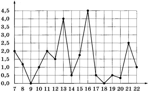 11 | На рисунке жирными точками показано суточное количество осадков, выпадавших в Мурманске с 7 по 22 ноября 1995 года. По горизонтали указываются числа месяца, по вертикали — количество осадков, выпавших в соответствующий день, в миллиметрах. Для наглядности жирные точки на рисунке соединены линиями.