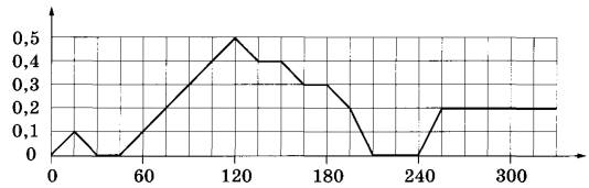14 | На графике изображена зависимость скорости погружения батискафа от времени. На вертикальной оси отмечена скорость в м/с, на горизонтальной — время в секундах, прошедшее с начала погружения.