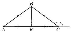 15 | В треугольнике ABC внешний угол при вершине С равен 150°, АВ = ВС = 18. Найдите длину медианы BK.