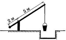 8 | На рисунке изображён колодец с «журавлём». Короткое плечо имеет длину 2 м, а длинное плечо — 5 м. На сколько метров опустится конец длинного плеча, когда конец короткого поднимется на 1 м?