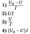 Задание 18. Электрическая цепь, схема которой изображена на рисунке, подключена к аккумулятору. Напряжение между полюсами аккумулятора равно U0, а показания идеальных амперметра и вольтметра равны соответственно I и U.