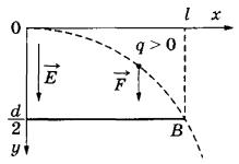 1. На заряженную частицу в однородном поле конденсатора действует сила F = qE, пропорциональная напряжённости поля и заряду частицы q.