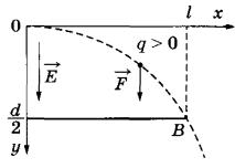 1. На заряженную частицу в однородном поле конденсатора действует сила F = qE, пропорциональная напряжённости поля и заряду частицы q.