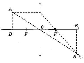 1. Построим изображение источника света в линзе. Изображением светящейся точки А в некоторый момент времени будет точка A1. Введём обозначения: радиус окружности, по которой движется источник света, r = AB; радиус окружности, по которой движется изображение источника света, R = А1В1; расстояние OB = d; расстояние OB1 = f; фокусное расстояние линзы OF = F.