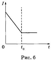Задание 28. Параллельно катушке индуктивности L включена лампочка (см. рис. а). Яркость свечения лампочки прямо пропорциональна напряжению на ней. На рис. б представлен график зависимости силы тока I в катушке от времени t. Сопротивлением катушки пренебречь. Опираясь на законы физики, изобразите график зависимости яркости свечения лампочки от времени.