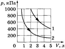 4)-5) Изотермы идеального газа в координатах p,V – гиперболы, расположенные на графике тем выше, чем выше температура, при которой происходит процесс, поэтому процесс 1 протекает при более высокой температуре, чем процесс 2.