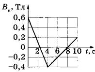Задание 32. Квадратная проволочная рамка со стороной l = 10 см находится в однородном магнитном поле с индукцией B. На рисунке изображена зависимость проекции вектора B на перпендикуляр к плоскости рамки от времени. Какое количество теплоты выделится в рамке за время t = 10 с, если сопротивление рамки R = 0,2 Ом?
