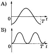 Задание 7. Груз, привязанный к нити, отклонили от положения равновесия и в момент t = 0 отпустили из состояния покоя (см. рисунок). На графиках А и Б представлены изменения физических величин, характеризующих движение груза после этого. Т — период колебаний.