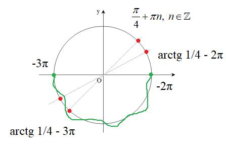 б) С помощью числовой окружности найдем корни, принадлежащие промежутку [-3π; -2π].