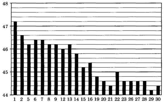 Задание 2. На диаграмме показан курс южноафриканского рэнда, установленный Центробанком РФ на все рабочие дни марта 2019 года. По горизонтали указаны числа месяца, по вертикали — цена 10 южноафриканских рэндов в рублях.