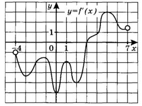 Задание 7. На рисунке изображён график y = f’(x) производной функции f(x), определённой на интервале (-4; 7). В какой точке отрезка [-2; 2] функция f(x) принимает наименьшее значение?