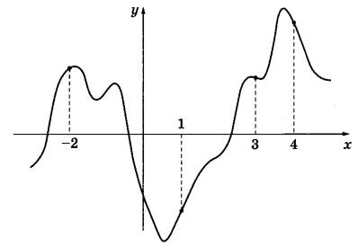 7 | На рисунке изображён график функции у = f(x). На оси абсцисс отмечены точки -2, 1, 3, 4. В какой из этих точек значение производной наибольшее? В ответе укажите эту точку.