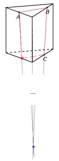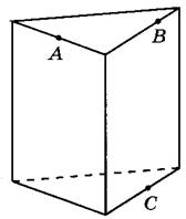 Задание 13. Плоскость, проходящая через точки А, В и С (см. рис.), разбивает правильную треугольную призму на два многогранника. Сколько вершин у получившегося многогранника с меньшим числом граней?